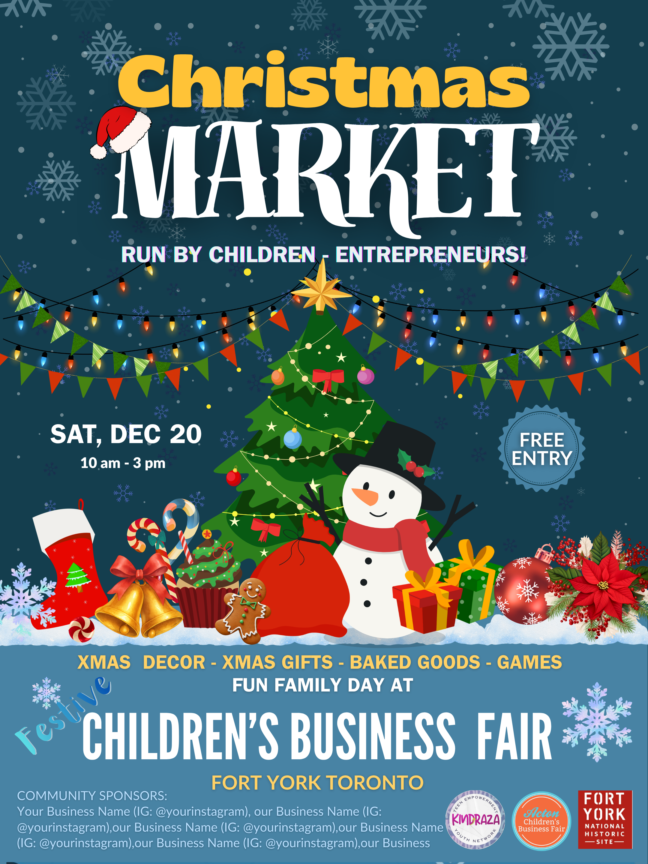 This December 20th at Fort York National Historic Site, 30+ Toronto’s young entrepreneurs (ages 6–16) will showcase their creativity, courage, and business ideas at the Toronto Children’s Business Fair — a vibrant celebration of innovation and community.